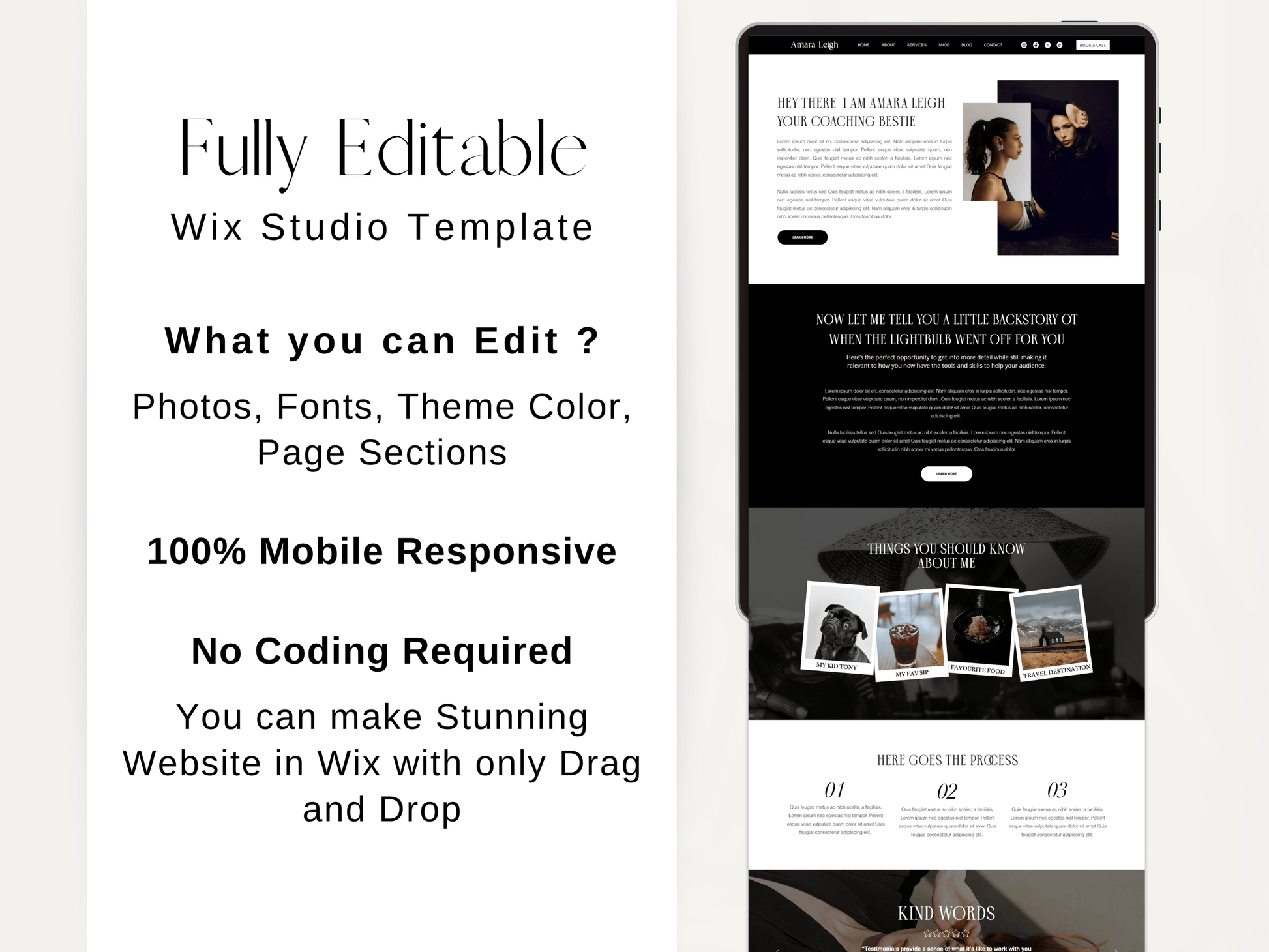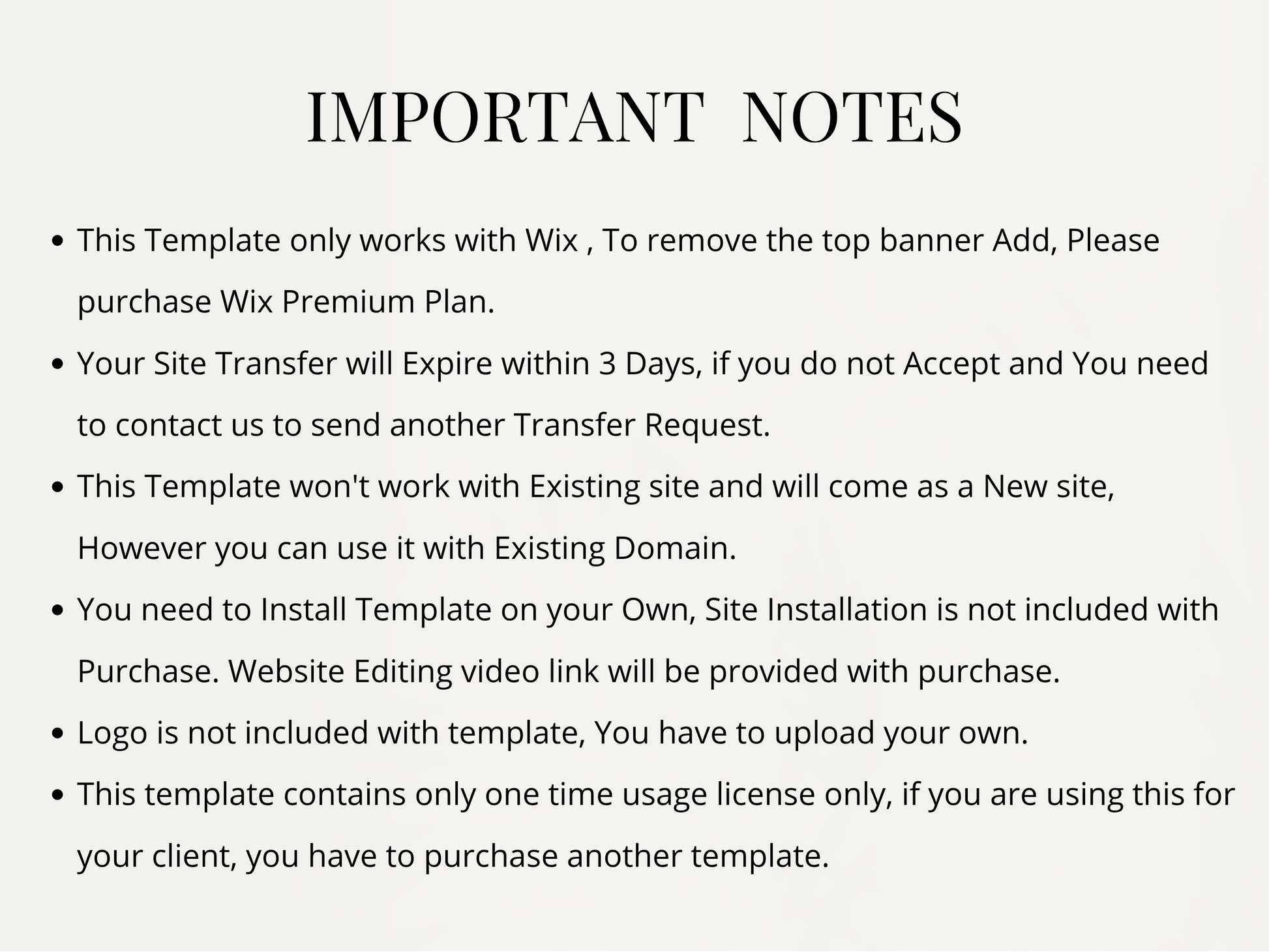 • Site Domain or Wix Premium Plan is Not Included with Template.