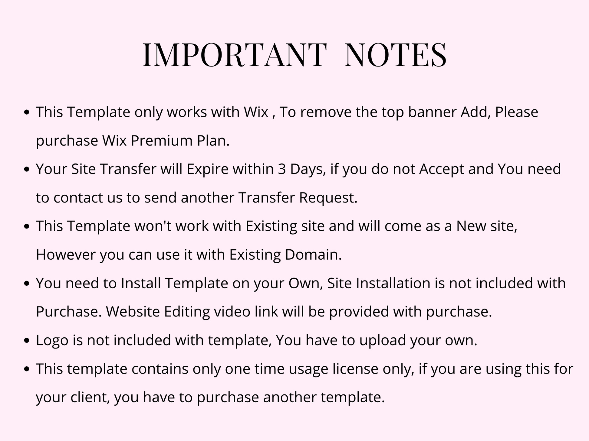 • This template is only works Wix not on other platforms.